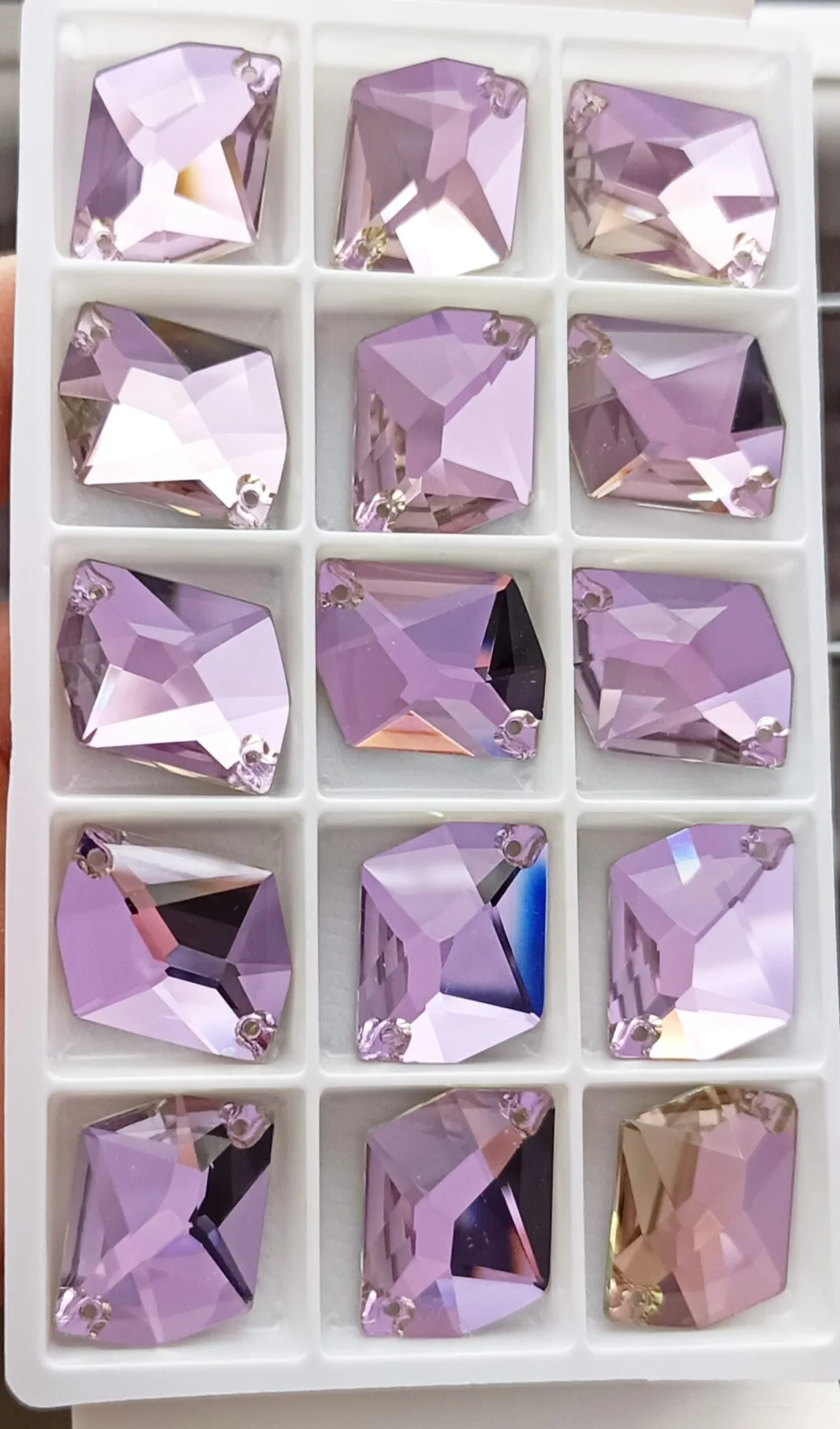 Космики пришивные из стекла, размер 16*20мм, Сиреневого цвета.