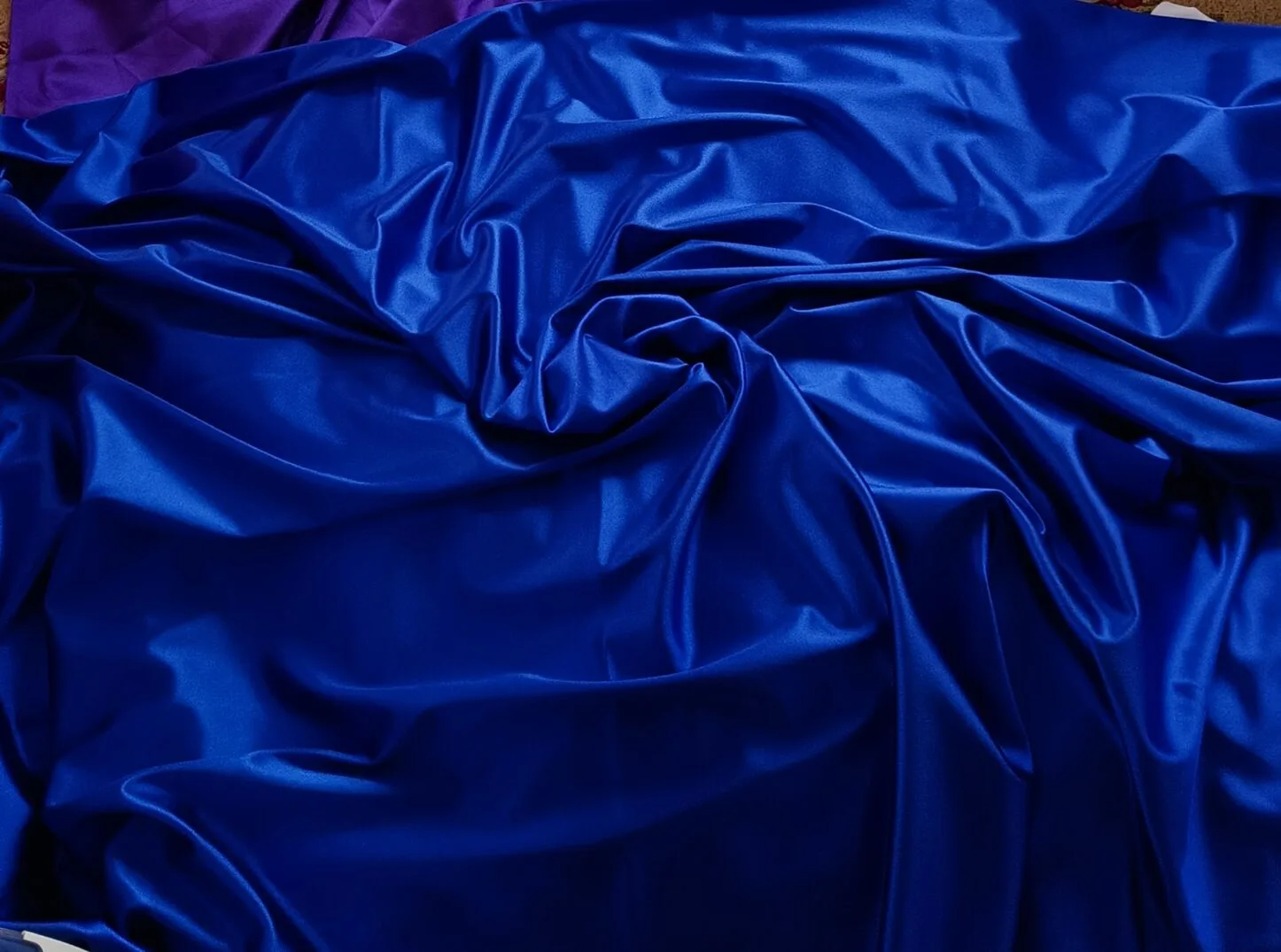 Вельвет сатин "Синий электрик" , ширина 150см. Ткань с глянцевым блеском с лицевой стороны, тянется как бифлекс. Под разным освещением цвет передаётся по разному.